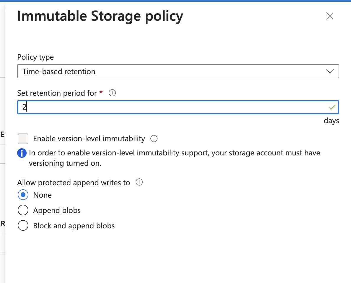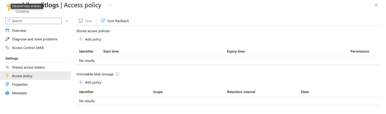 - Nastavujete časový rámec, počas ktorého sú dáta v kontajneri nezmeniteľné. Po uplynutí tohto obdobia je možné politiku aktualizovať alebo odstrániť.