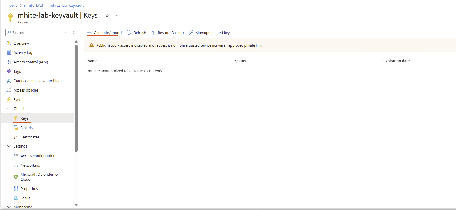 Nastavenie šifrovania v storage account je potrebné vykonať na novej inštancii. Na inštaláciu je potrebné mať nasadený Key Vault, ktorý zabezpečuje uloženie súkromných kľúčov, pomocou ktorých sa bude dané úložisko šifrovať.