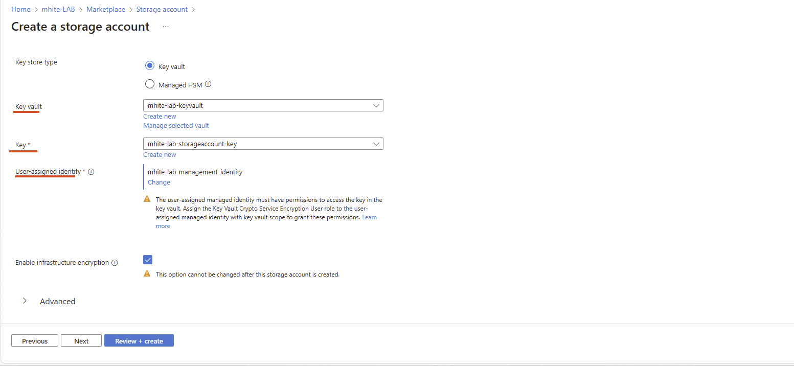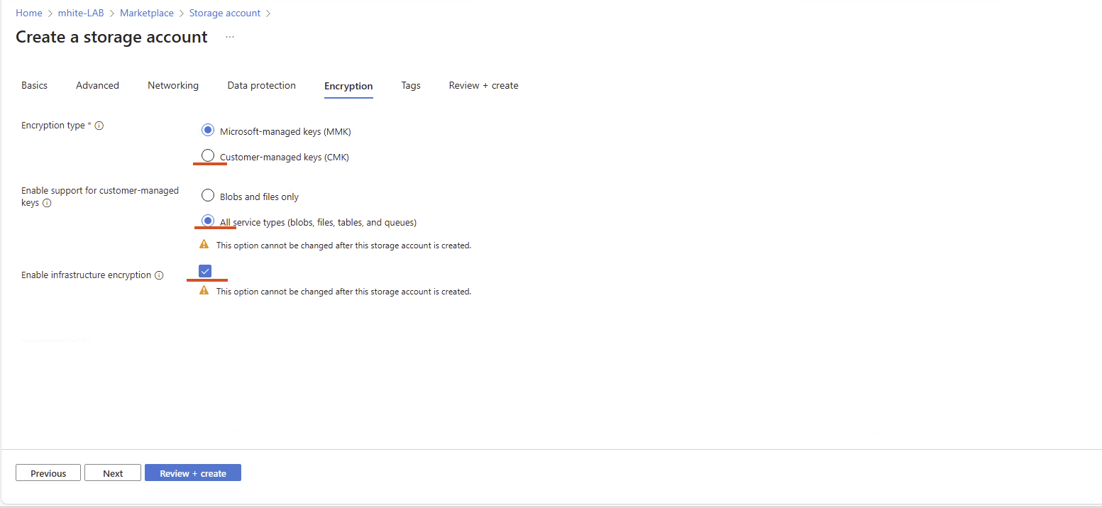 2. Vytvorenie kľúčov pri inštalácii storage account (túto možnosť nie je možné neskôr zmeniť)